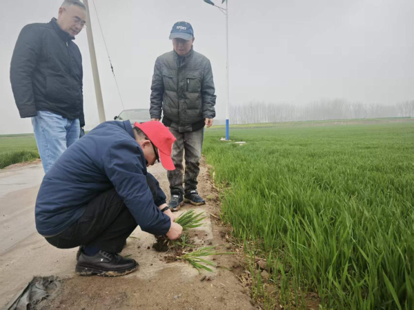 座谈结束后,银龄志愿者还深入问题麦田实地查看。在一块药害残留较明显的地块,专家蹲下身子拨开麦苗,手把手教农户辨别症状、分析成因,现场开出“管理处方”。