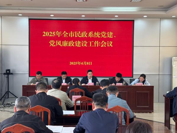 4月8日,市民政局召开2025年全市民政系统党建、党风廉政建设工作会议,深入学习习近平总书记关于全面从严治党重要论述,总结回顾2024年党建、党风廉政建设工作,对2025年工作进行安排部署。