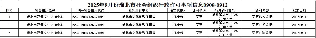 2025年9月份淮北市社会组织行政许可事项信息0908-0912
