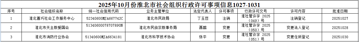 2025年10月份淮北市社会组织行政许可事项信息1027-1031