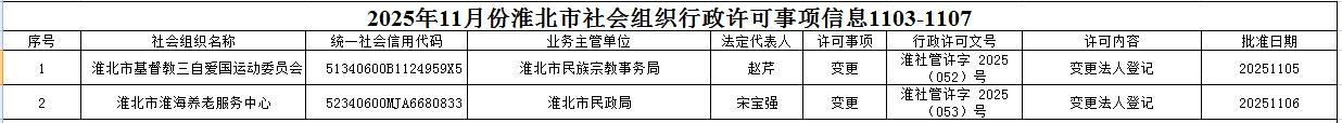 2025年11月份淮北市社会组织行政许可事项信息1103-1107