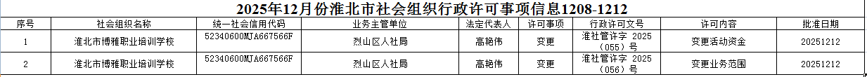 2025年12月份淮北市社会组织行政许可事项信息1208-1212
