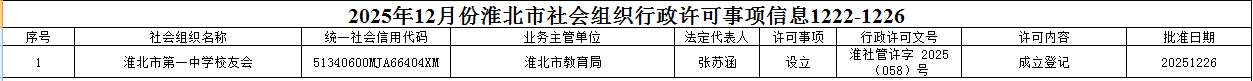 2025年12月份淮北市社会组织行政许可事项信息1222-1226